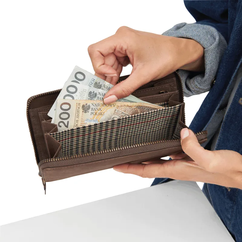 LADY valódi bőr pénztárca: cipzárral, 12 db kis kártyatartó zsebbel, a zsebek RFID blokkóval a nem kívánatos szkennelés ellen, 3 zseb a bankjegyek számára, 1 cipzáras zseb a fémpénzek számára