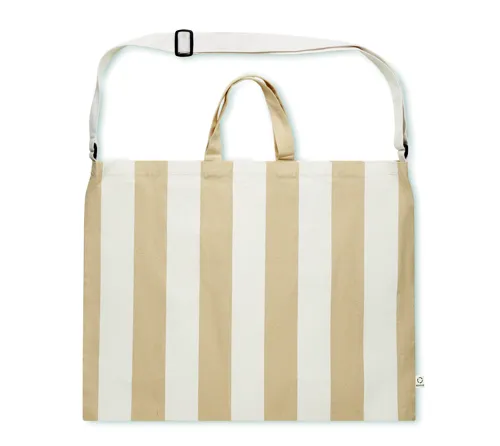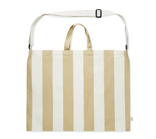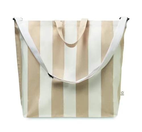 Extra nagy csíkos strandtáska 280 g/m² vastag újrahasznosított pamutból (80%) és újrahasznosított poliészterből (20%), belső zsebbel. Rövid fülek és állítható vállpánt.