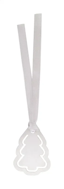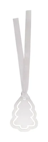 Rozsdamentes acéllemezből készült karácsonyi oldaljelölő ezüst szalagon.