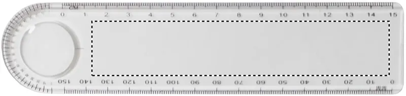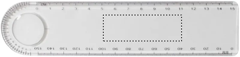 15 cm-es műanyag vonalzó nagyítóval és szögmérővel.