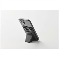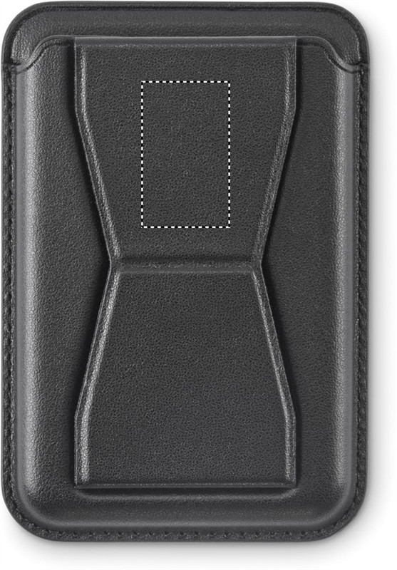 PU bőr, telefonra rögzíthető kártyatartó két kártya számára, telefon állvány funkcióval, mágneses záródással. Kompatibilis az iPhone® 12 és újabb készülékekkel. Mágneses fémgyűrűvel, amely támogatja a nem mágneses telefonokkal való használatot.