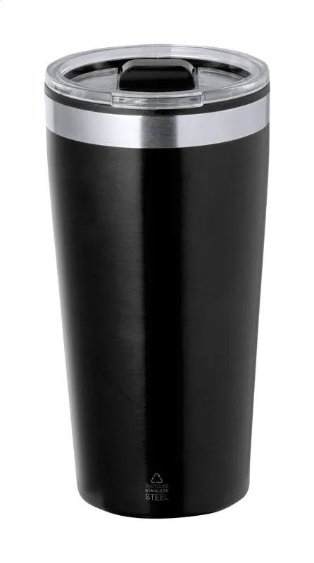 Duplafalú, újrahasznosított rozsdamentes acél thermo pohár PP műanyag ivófedéllel, 600 ml.