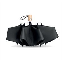 23 colos, 3 szakaszos összecsukható, automatikusan nyíló és záródó viharesernyő 190T RPET anyagból. Üvegszálas bordák. Bambusz fogantyú pamutvászon csuklópánttal. Hozzáillő RPET tokkal. A bambusz természetes anyag, színében, mintázatában és méretében esetenként eltérő lehet.