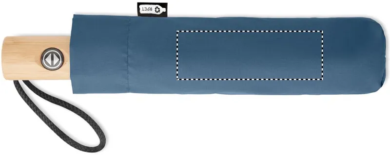 23 colos, 3 szakaszos összecsukható, automatikusan nyíló és záródó viharesernyő 190T RPET anyagból. Üvegszálas bordák. Bambusz fogantyú pamutvászon csuklópánttal. Hozzáillő RPET tokkal. A bambusz természetes anyag, színében, mintázatában és méretében esetenként eltérő lehet.