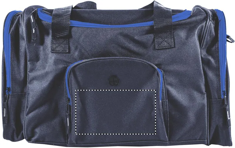 Sporttáska 600D poliészter anyagból. 2 cipzáras oldalsó rekesz és egy cipzáras elülső zseb fülhallgató kimeneti nyílással. Állítható és levehető vállpánt.