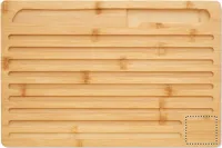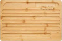 Bambusz vágódeszkából és bambusz nyelű, rozsdamentes acél kenyérvágó késből álló készlet. A bambusz természetes anyag, színében, mintázatában és méretében esetenként eltérő lehet. FSC®-certified | FSC 100%, N5.7, FSC-C213206