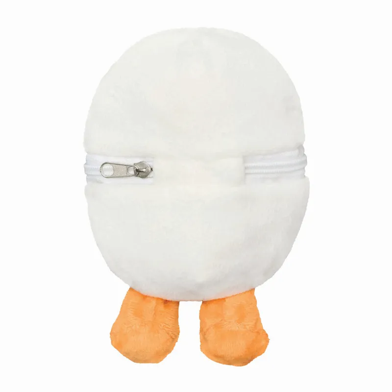 LENI plüss kacsa: puha bundával, plüss cipzáras tojásban, emblémázható papírszívvel