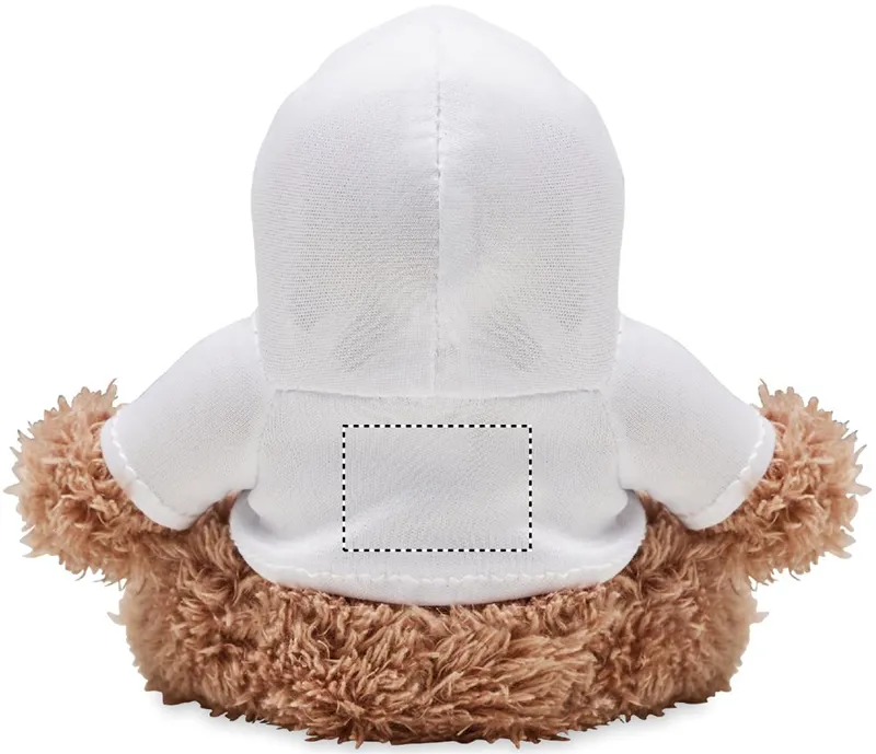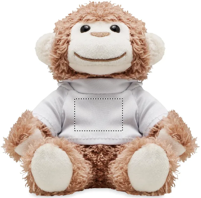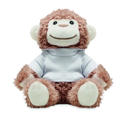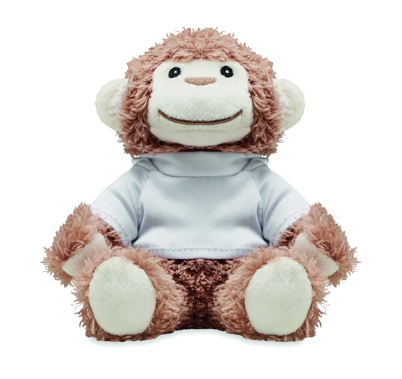 Kapucnis pulóvert viselő plüss majom. A pulóver ideális szublimációs nyomtatáshoz.