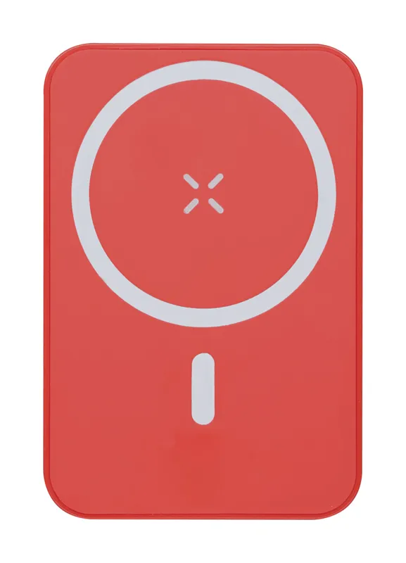 ABS műanyag power bank 5000 mAh akkumulátorral és beépített mágneses vezeték nélküli töltővel (5W). USB-C bemenettel és töltőporttal. Kompatibilis az iPhone® 12 vagy újabb készülékekkel. USB töltőkábellel szállítjuk.