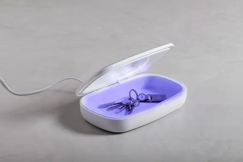 UV-C fertőtlenítő doboz a mindennap használatos tárgyakon lévő mikroorganizmusok és baktériumok elpusztítására. Ideális okostelefonokhoz, kulcsokhoz, szemüveghez. 5 és 10 perces sterilizációs időtartam, automatikus kikapcsolási funkcióval. USB töltőkábellel szállítjuk.