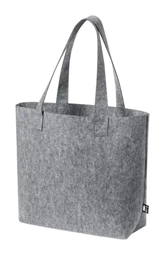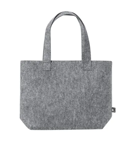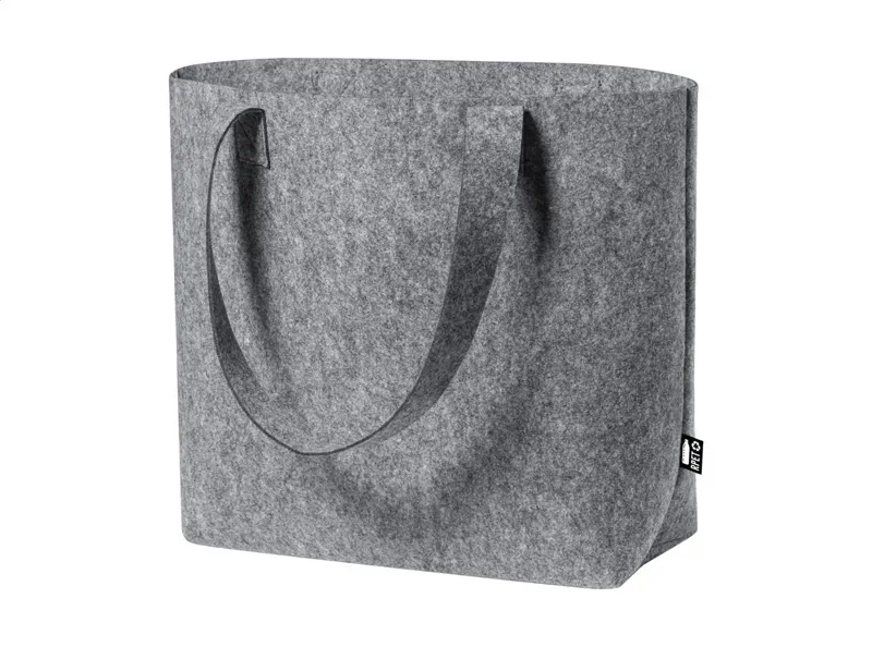 RPET filc anyagú bevásárlótáska betoldással és közepes hordfüllel. Megkülönböztető RPET címkével ellátva.