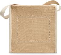 Juta hűtőtáska pamut füllel és elülső zsebbel 6 db 0,5 literes palack számára. Szigetelés: 3 mm vastag alumínium fólia. Kapacitás: 3 l.