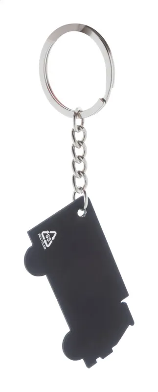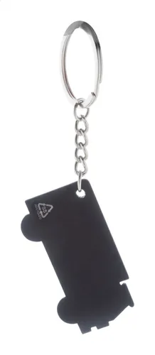 Teherautó alakú, újrahasznosított rozsdamentes acél kulcstartó gumírozott felülettel. Speciális bevonattal tükögravírozáshoz.