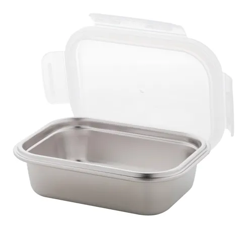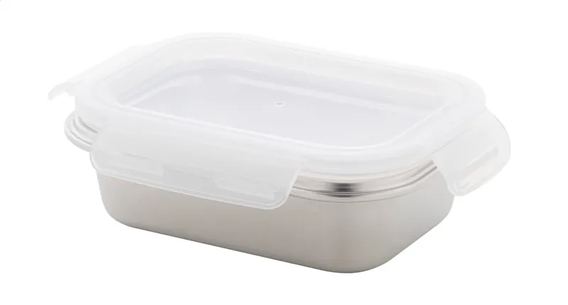 Rozsdamentes acél uzsonnás doboz, légmentesen záródó, PP műanyag fedéllel. 650 ml.
