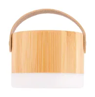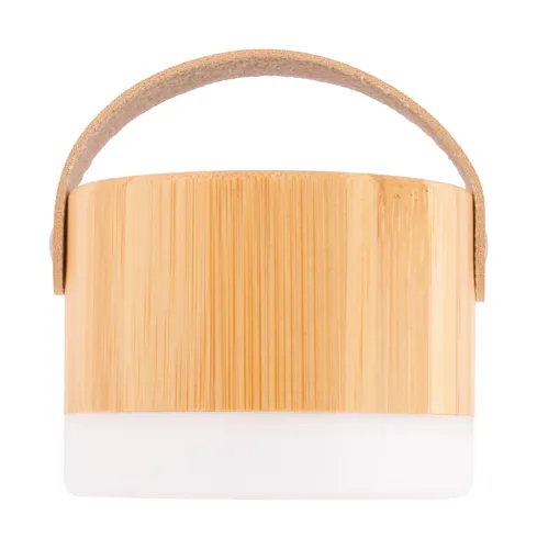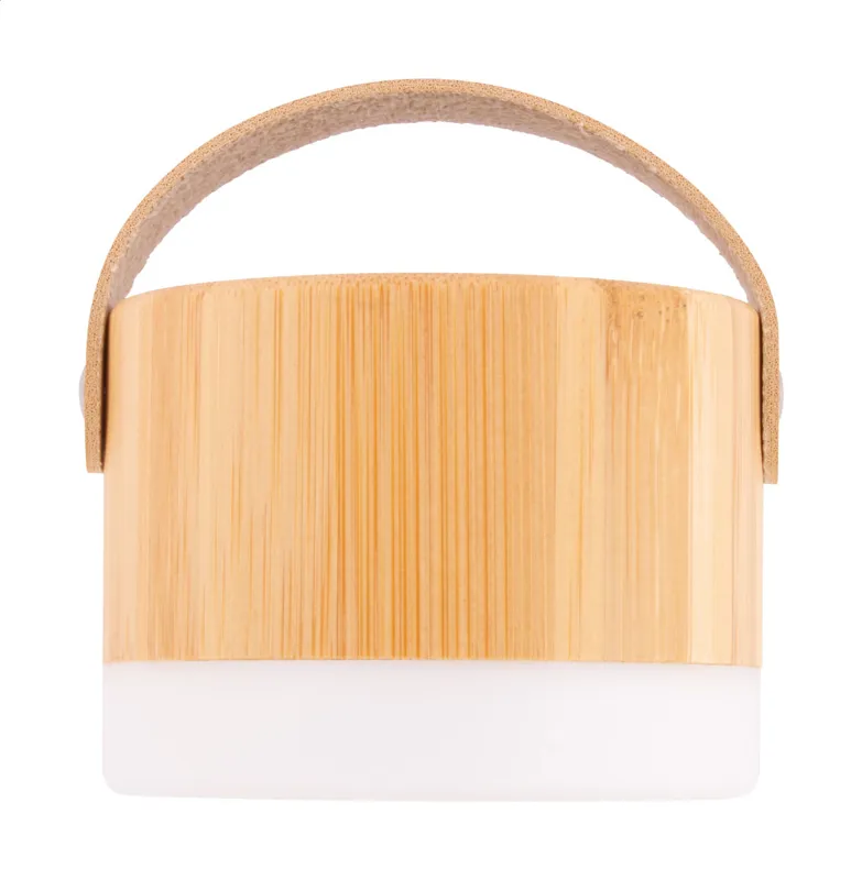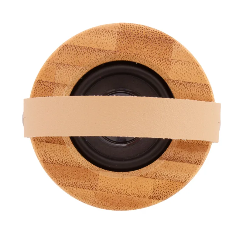 Vezeték nélküli hangszóró bambusz és ABS műanyag borítással, alján LED világítással, PU bőr hordszíjjal és beépített újratölthető akkumulátorral. USB töltőkábellel szállítjuk.