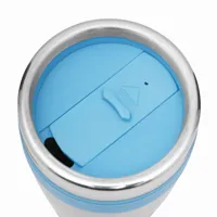 LUNGO duplafalú termobögre kívül rozsdamentes acél, belül műanyag, letekerhető fedéllel, rajta nyílással, különböző színek, kb. 400 ml kapacitás