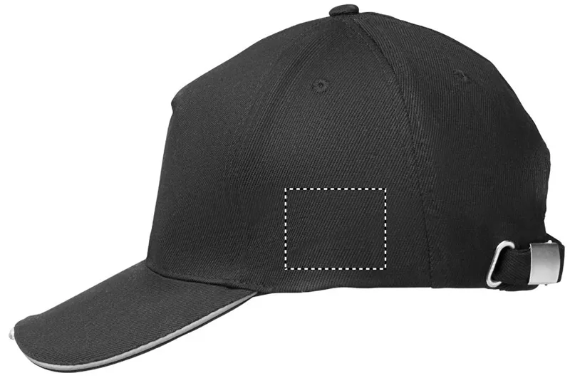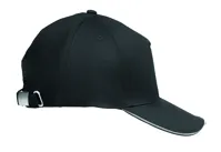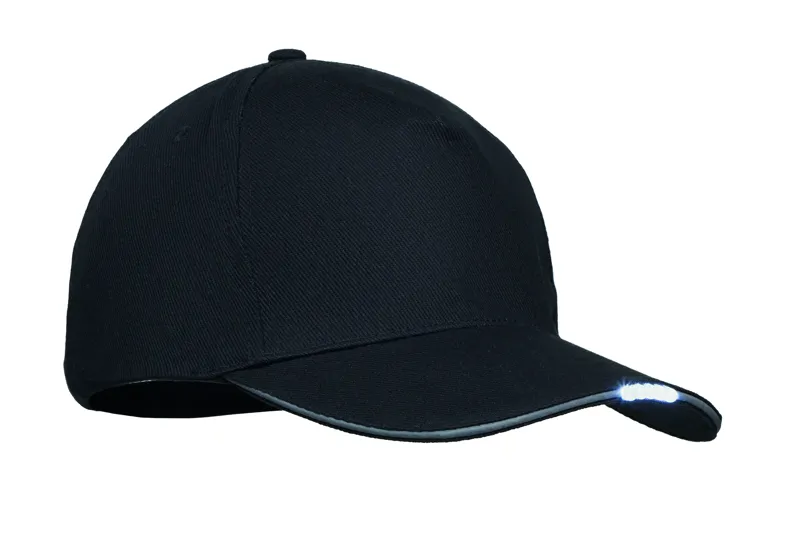 5 paneles baseball sapka 5 LED-es világítással, 220 g/m² pamutból, fém csattal. USB töltőkábelt tartalmaz.