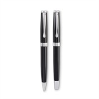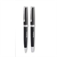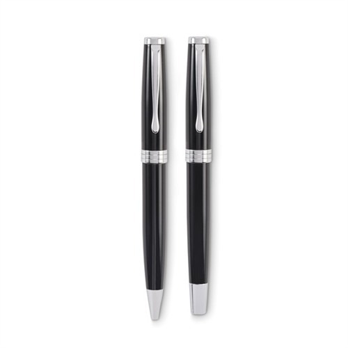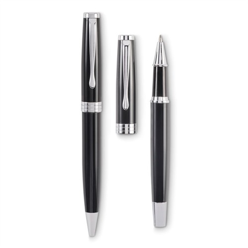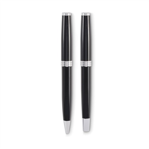 Csavarzáras golyóstollból és roller tollból álló szett újrahasznosított rozsdamentes acél tolltesttel. Kéken, illetve feketén író betéttel. Ajándékdobozban.