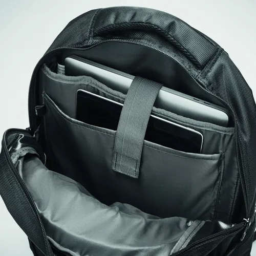 15 colos laptoptartó hátizsák több rekesszel. Több zsebbel és tolltartó résszel. Párnázott hátrész és vállpántok. 1680D poliészter anyagból.