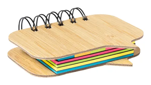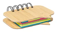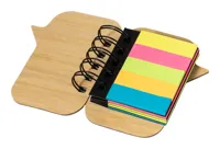 Bambusz borítású, spirál öntapadós jegyzettömb. 100 nagyméretű lapot (4 különböző színben) és 125 kisméretű lapot (5 különböző színben) tartalmaz.