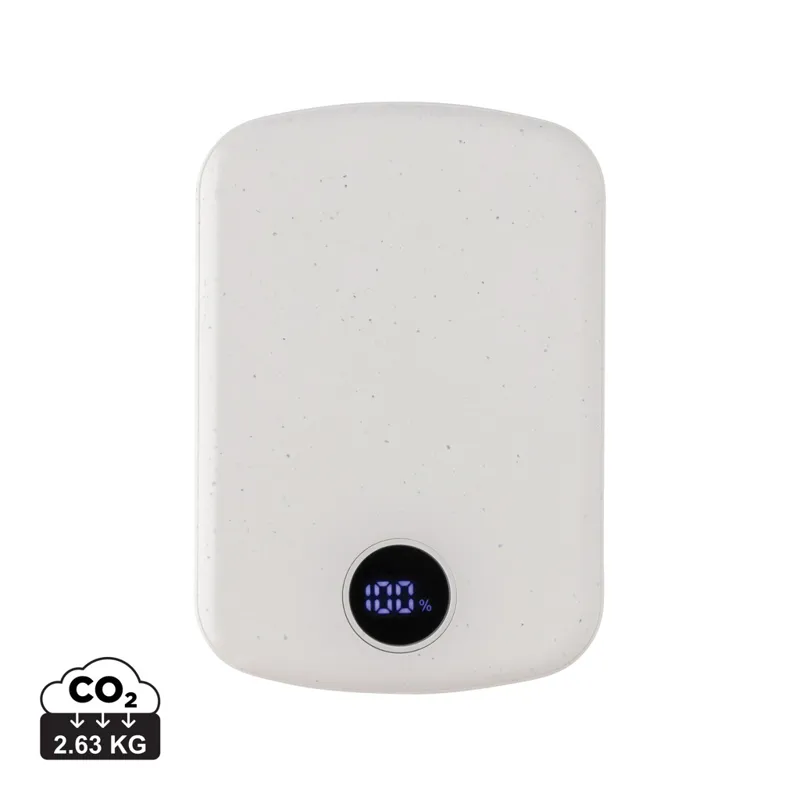 5000 mAh, zsebméretű powerbank 15W-os mágneses, vezeték nélküli töltővel, melynek háza RCS újrahasznosított ABS műanyagból készült. Az RCS-tanúsítvány biztosítja az újrahasznosított anyagok ellátási láncát. Teljes újrahasznosított anyagtartalom: 21% a termék összsúlya alapján. A powerbank hosszú élettartamú, A-fokozatú, 5000mAh lítium-polimer akkumulátort tartalmaz. Beépített digitális LED töltöttségjelző; C típusú bemenet 5V/2,4A; C típusú kimenet: 5V/2A. 4A A termék és tartozékai PVC-mentesek. RCS újrahasznosított TPE töltőkábellel. FSC® mix csomagolásban. C típusú bemenet: 5V/3A 9V/2A 12V/1,5A; kimenet: USB-C kimenet: 5V/2,4A, 9 V/2,22A, 12V/1,67A; vezeték nélküli kimenet: 15W