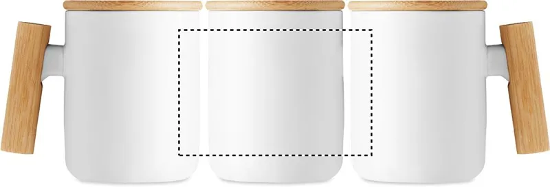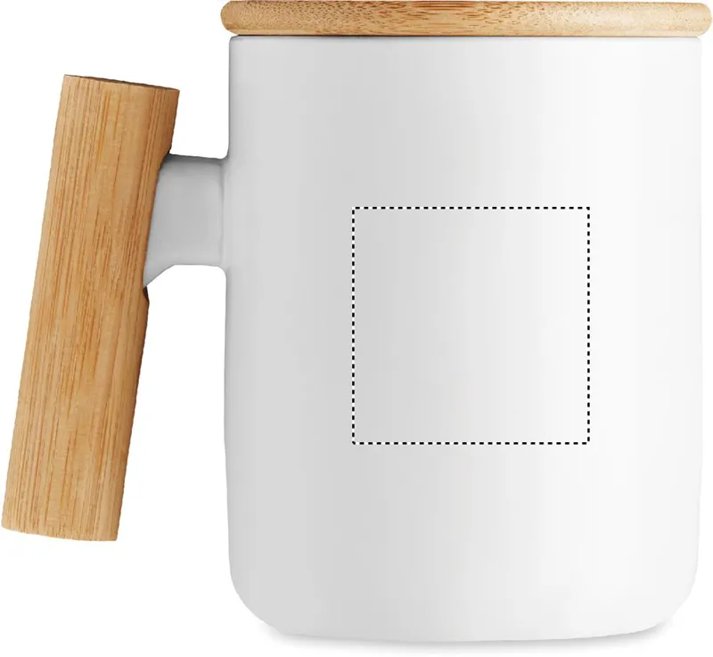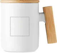Porcelán bögre bambusz fedéllel és fogantyúval. Űrtartalom: 380 ml. A bambusz természetes anyag, színében, mintázatában és méretében esetenként eltérő lehet.