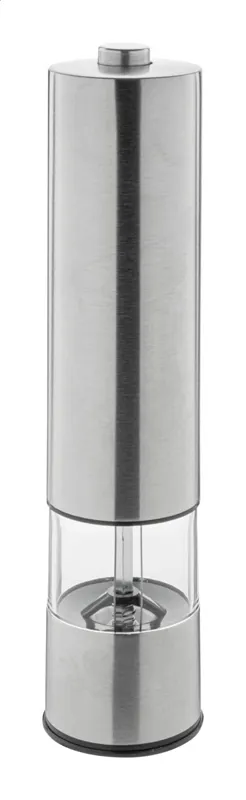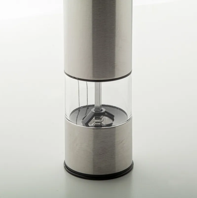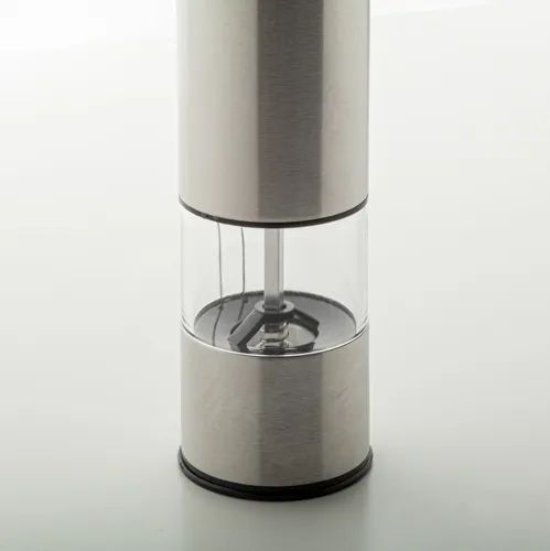 Rozsdamentes acélból készült elektromos só- és borsőrlő kerámia részlettel és LED lámpával. 4 db AA elemmel működik, elem nélkül szállítjuk.