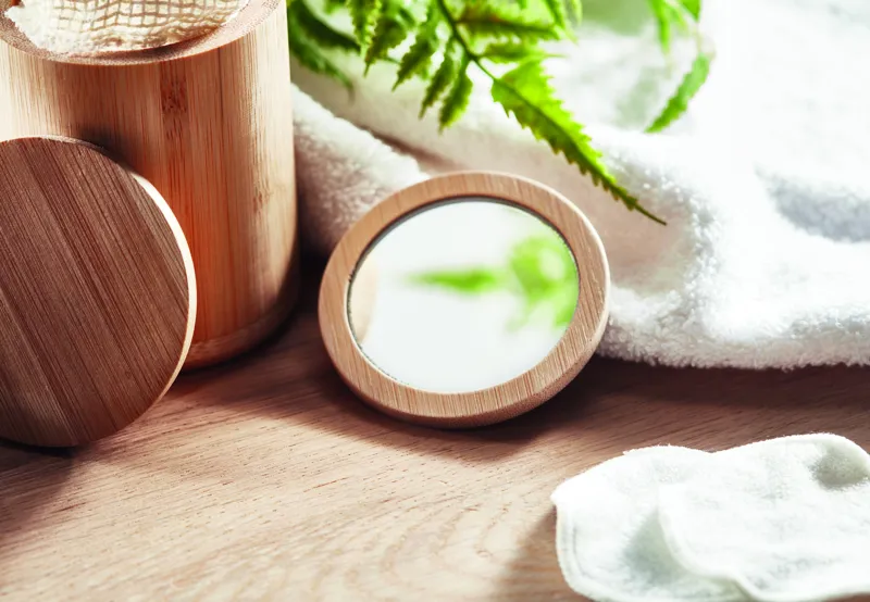 Kerek bambusz egyoldalas sminktükör. Ez a kis tükör ideális kiegészítő, ha sminkelni szeretne vagy gyorsan ellenőrizné, hogy hogyan néz ki. Húzózsinóros pamuttasakban szállítjuk. A bambusz természetes anyag, termékenként szín- és méretbeli eltérések jelentkezhetnek, ami befolyásolhatja a dekoráció végső eredményét. FSC®-certified | FSC 100%, N5.7, FSC-C213206