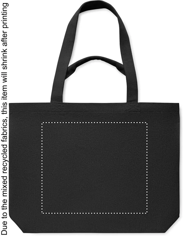 Újrahasznosított anyagból (60% újrahasznosított pamut, 40% újrahasznosított poliészter) készült bevásárló- vagy strandtáska rövid és hosszú fülekkel. 320 g/m².