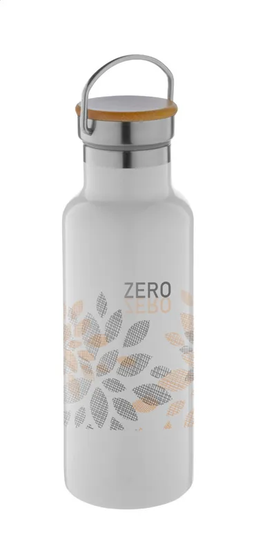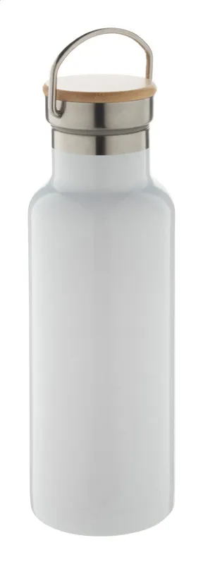 Duplafalú rozsdamentes acél, vákuumos termosz bambusz akasztós kupakkal, 500 ml. Ideális szublimációs emblémázáshoz.