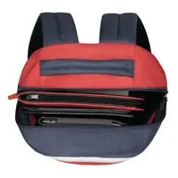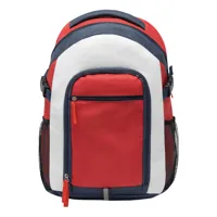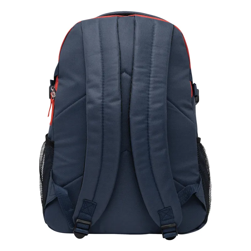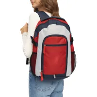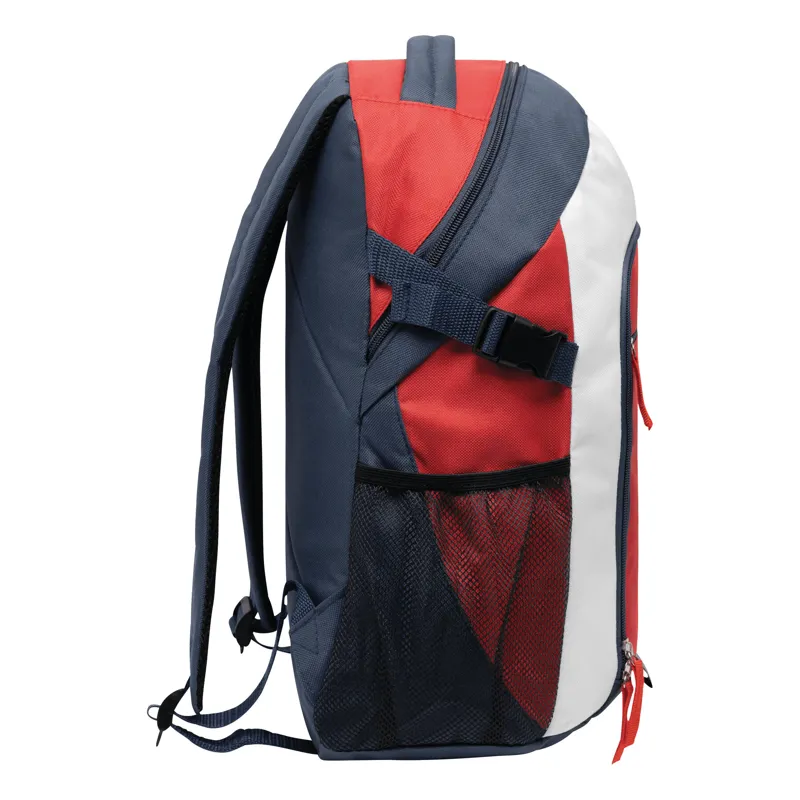 MARINA hátizsák: cipzáras fő rekesszel, cipzárral záródó első zsebbel, amin még egy extra, szintén cipzáras zseb található, 2 oldalsó hálós zseb, oldalsó összehúzó pántok, megerősített fül, bélelt vállpántok és hátrész