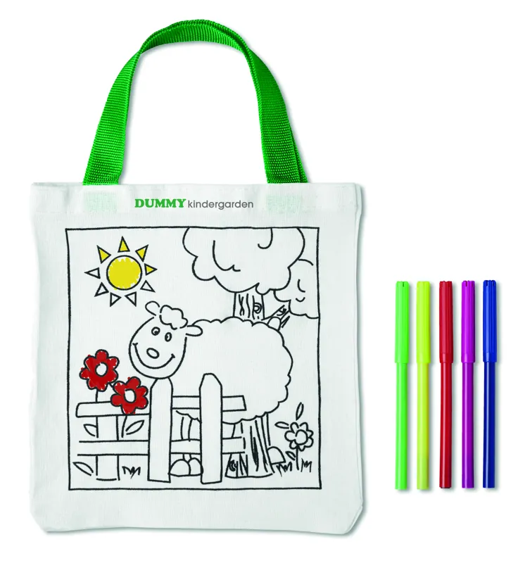 Pamut táska 5 db színező tollal. 200 g vastag anyag.