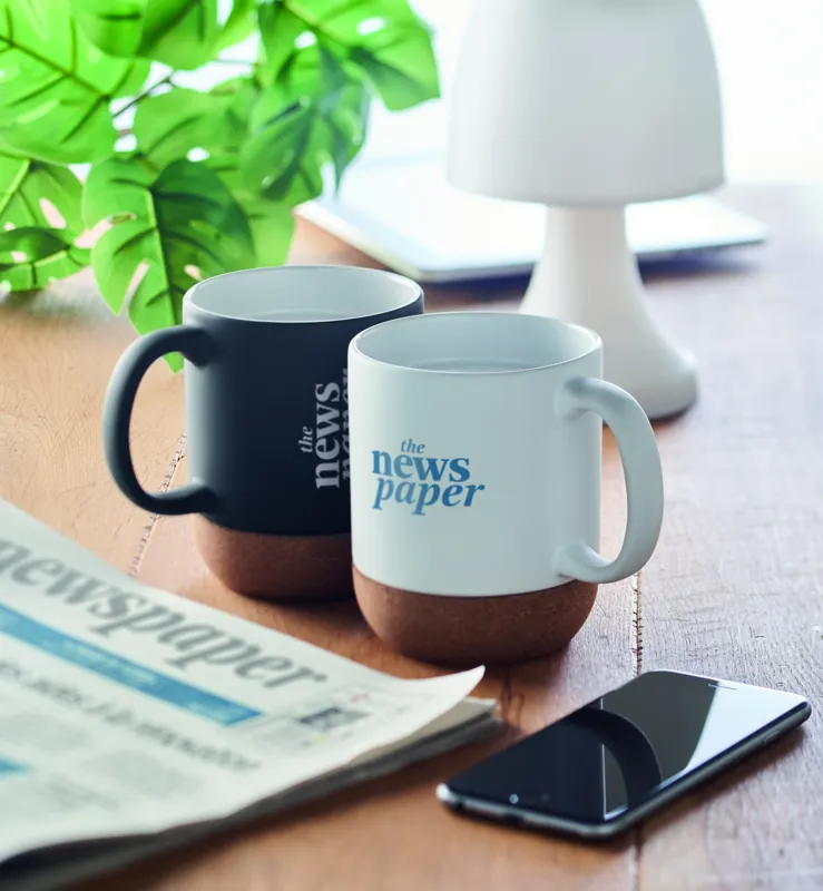 Matt kerámia bögre parafa aljjal. Űrtartalom: 300 ml.A parafa 100%-ban természetes anyag. Szerkezeti jellege és felületi porozitása miatt az egyes tárgyak végső emblémázási eredménye eltéréseket mutathat. Speciális bevonattal lézergravírozáshoz