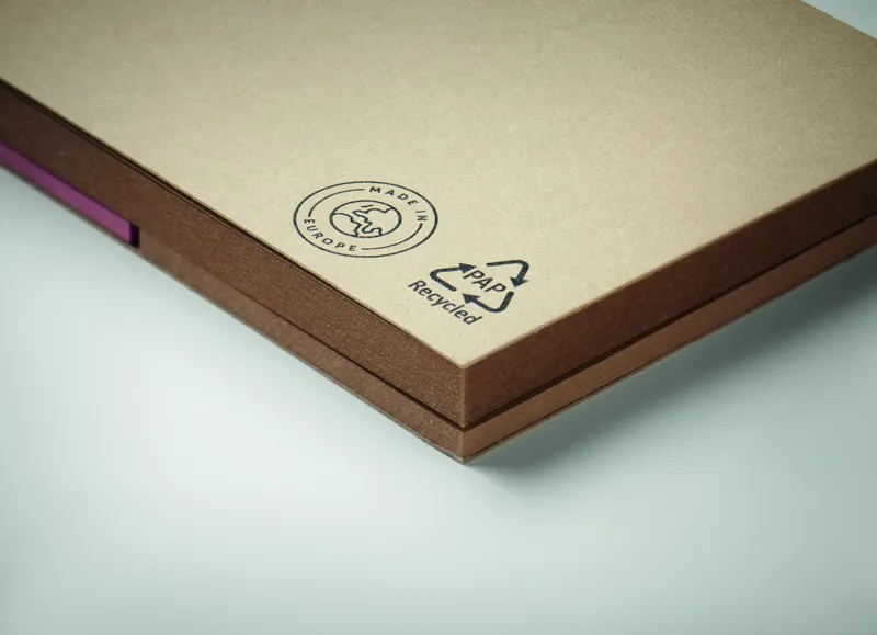 2 funkciós kombi öntapadós jegyzetelő szett újrahasznosított papírborítóval. 25 lapos öntapadós jegyzetelő és 3 különböző színű lapjelölő. EU-ban gyártva.