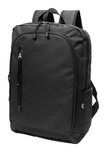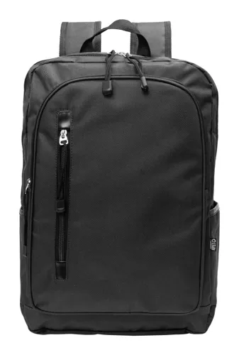 RPET hátizsák cipzáras fő rekesszel, 2 cipzáras első zsebbel, oldalzsebekkel és párnázott laptop (15") rekesszel. Párnázott hát- és vállpántokkal. 600D RPET poliészter, megkülönböztető RPET címkével.
