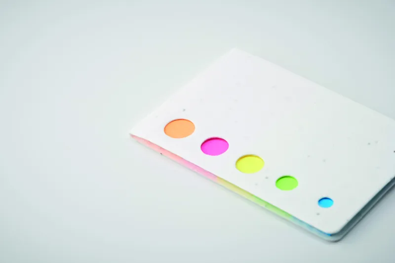 Magpapír borítós, 5 színű öntapadós jelölők. Használat után a borítót földbe ültetve a benne lévő magokból pipacsok hajtanak ki.
