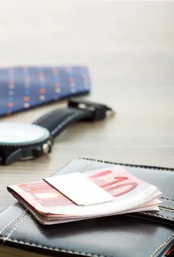 Krómozott pénzcsipesz, fekete karton díszdobozban.