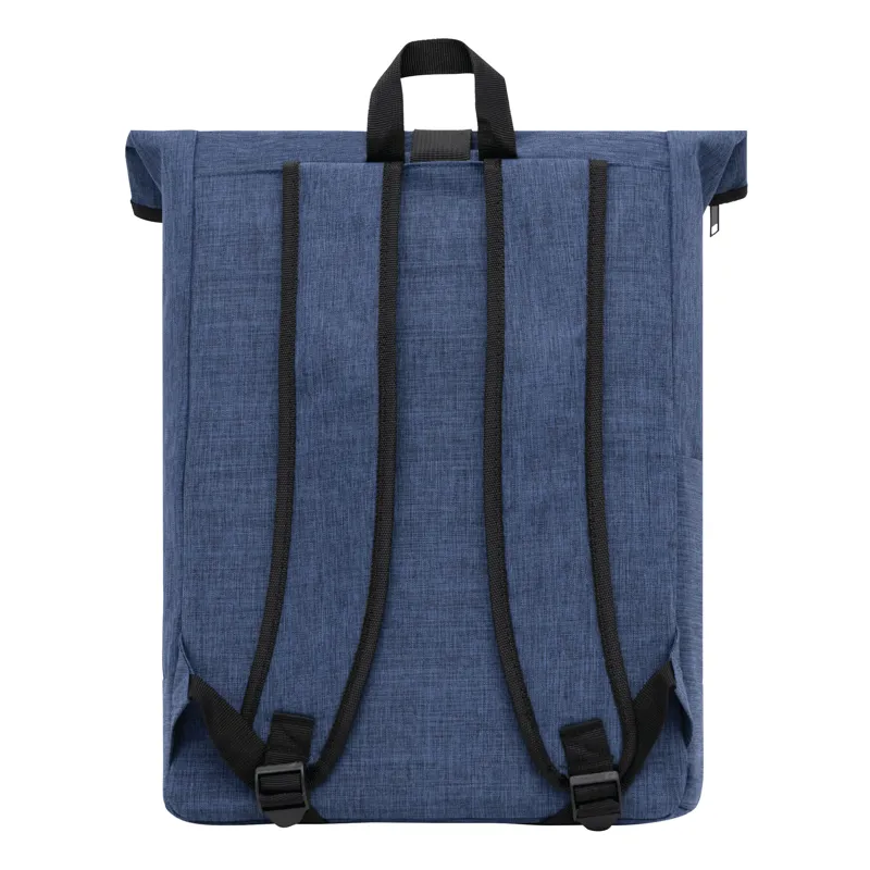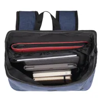 MESSENGER hátizsák: függőleges elülső zseb cipzárral, főzseb cipzárral és párnázott belső zseb laptop vagy tablet számára, feltekerhető és tépőzárral zárható, párnázott vállpántok és hátrész, hordozó fül