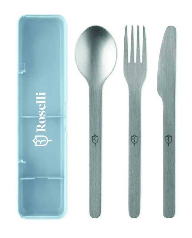 MESTECK Rozsdam. acél evőeszközkészlet világoskék