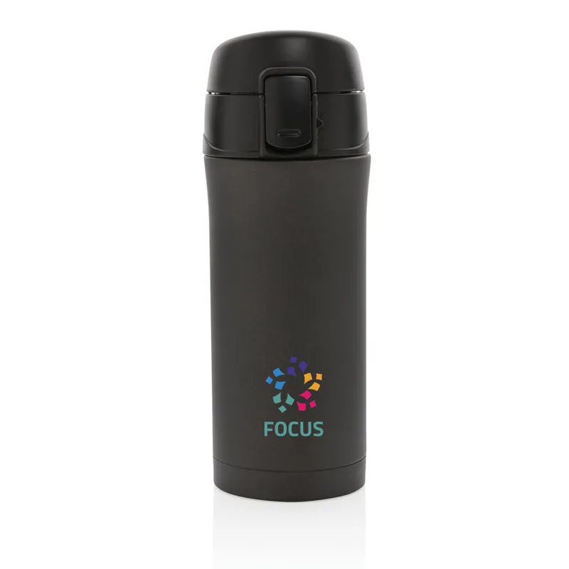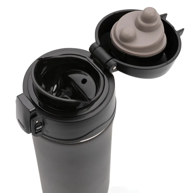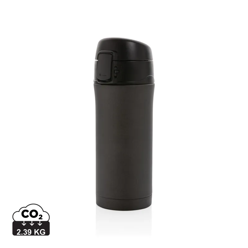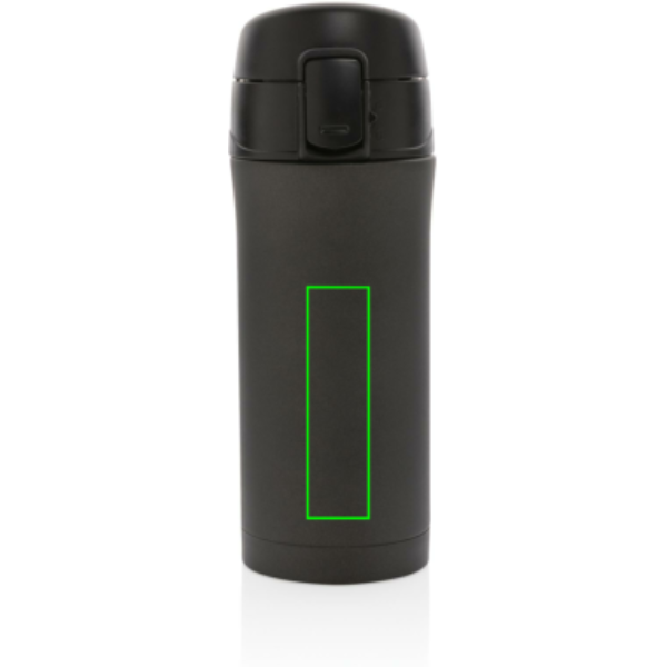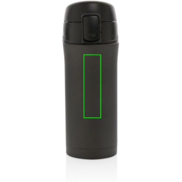 Elegáns metál fényű duplafalú vákuumbögrére rozsdamentes acélból így itala akár 5 órán keresztül is meleg marad és 15 órán keresztül pedig hideg. A termék teteje könnyen tisztítható, akár mosogatógépben is, emellett pedig kiválóan zár ezáltal teljesen szivárgásmentes. A különleges kialakításnak köszönhetően egy kézzel is kényelmesen használható illetve az autók pohártartójába is befér. Űrtartalma: 300ml.