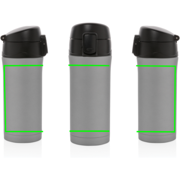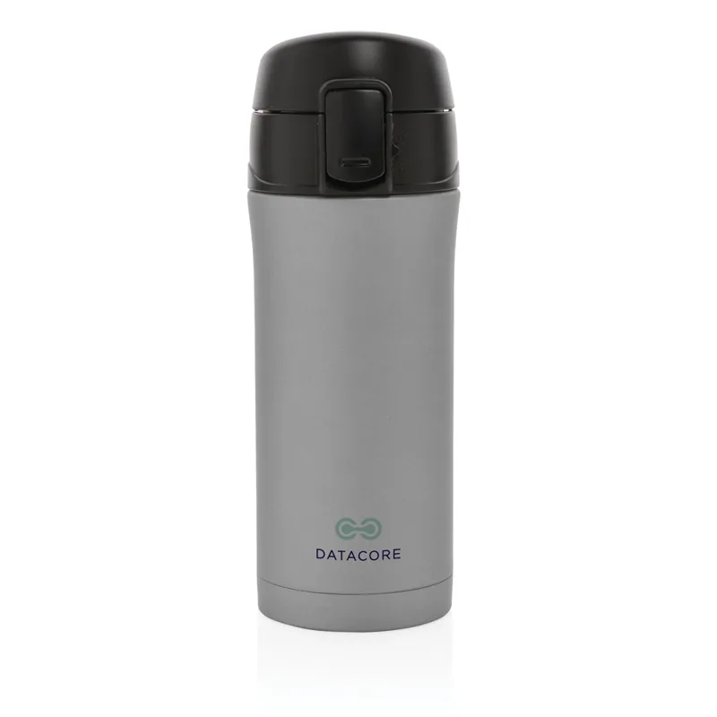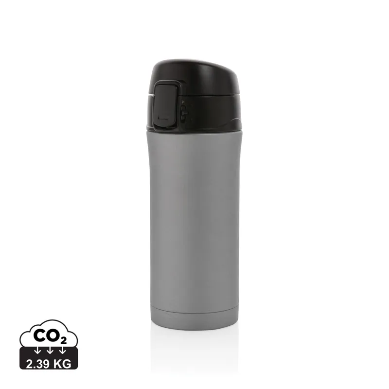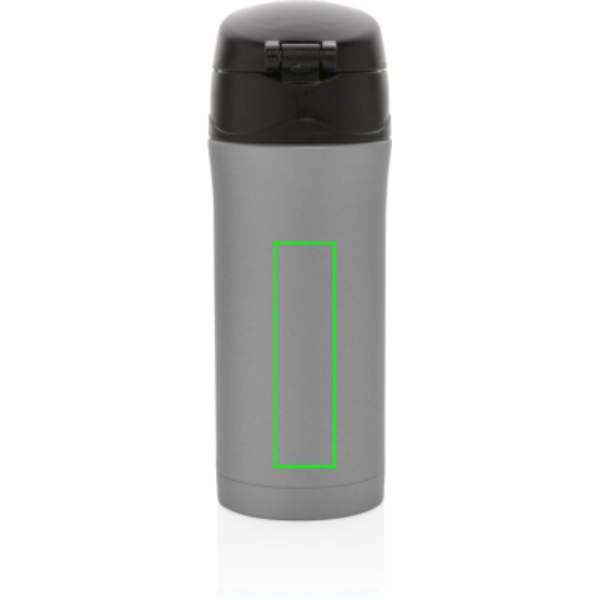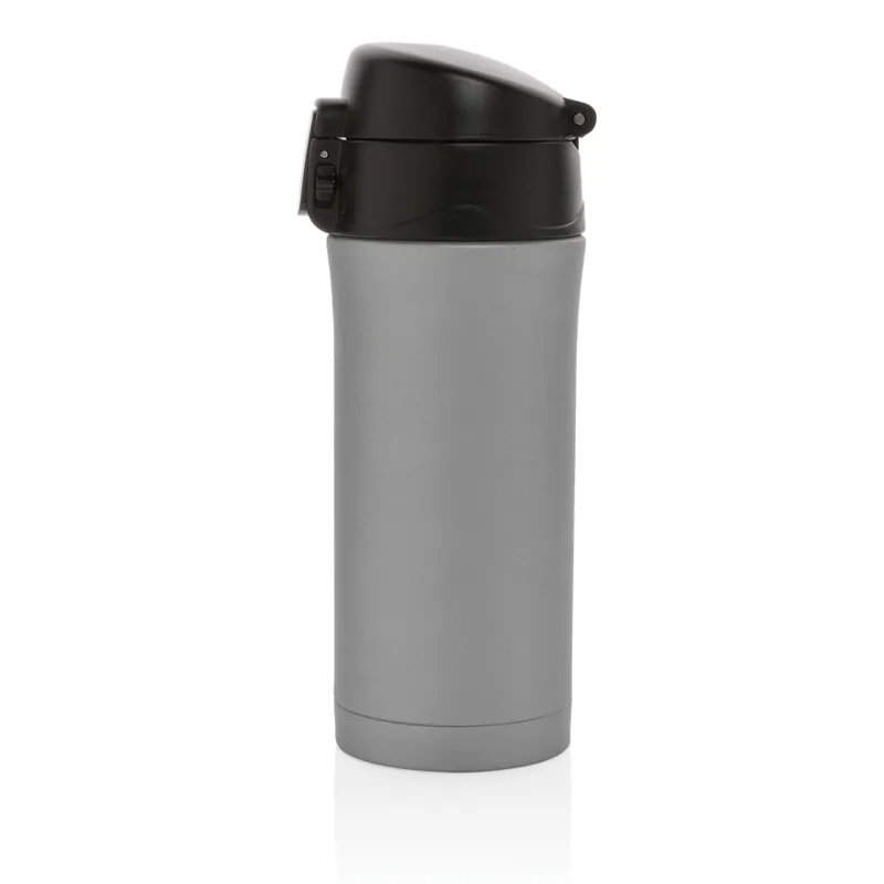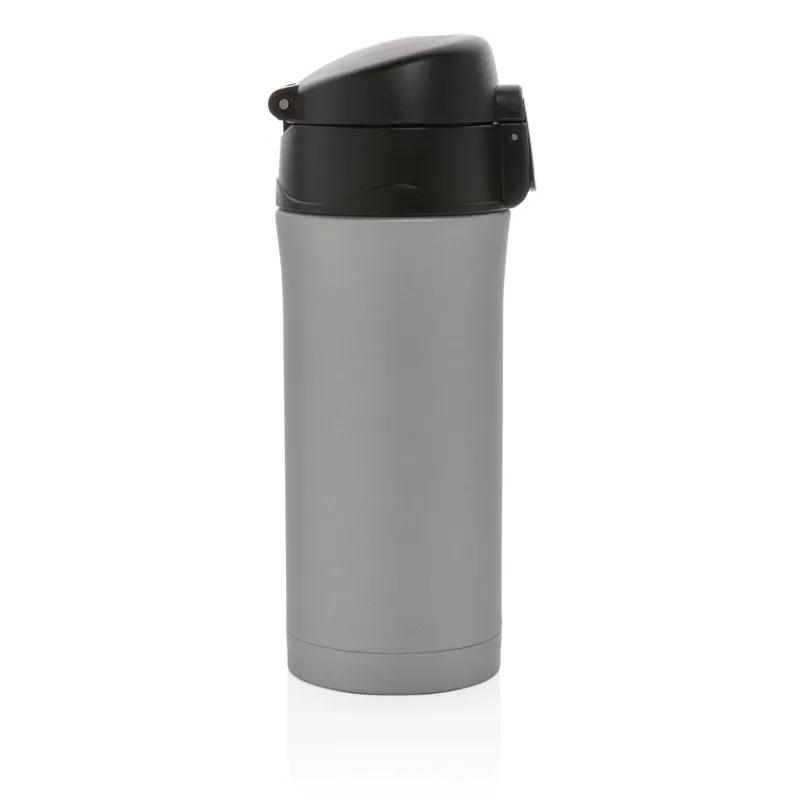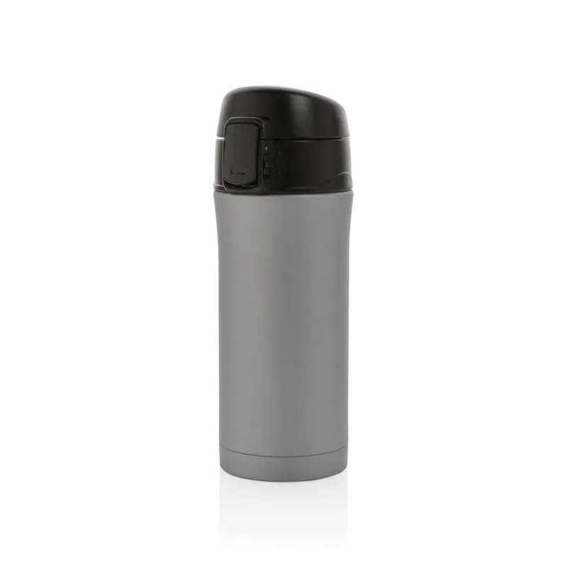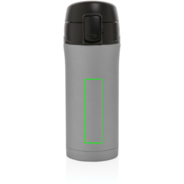 Elegáns metál fényű duplafalú vákuumbögrére rozsdamentes acélból így itala akár 5 órán keresztül is meleg marad és 15 órán keresztül pedig hideg. A termék teteje könnyen tisztítható, akár mosogatógépben is, emellett pedig kiválóan zár ezáltal teljesen szivárgásmentes. A különleges kialakításnak köszönhetően egy kézzel is kényelmesen használható illetve az autók pohártartójába is befér. Űrtartalma: 300ml.