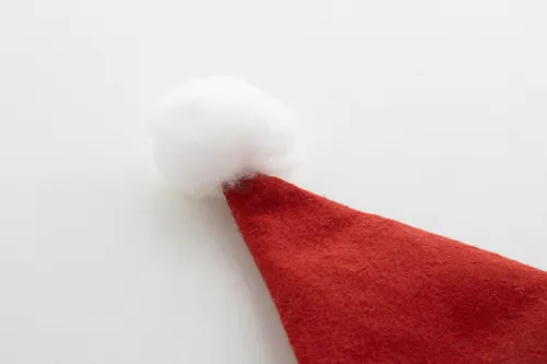 Klasszikus karácsonyi Mikulás sapka gyerekeknek RPET filcből, fehér szegéllyel és bojttal.