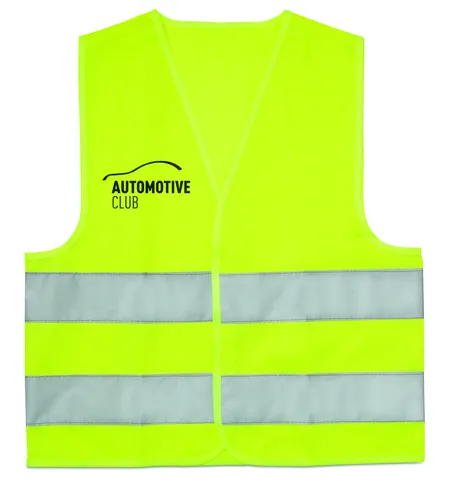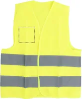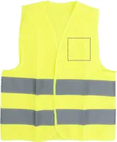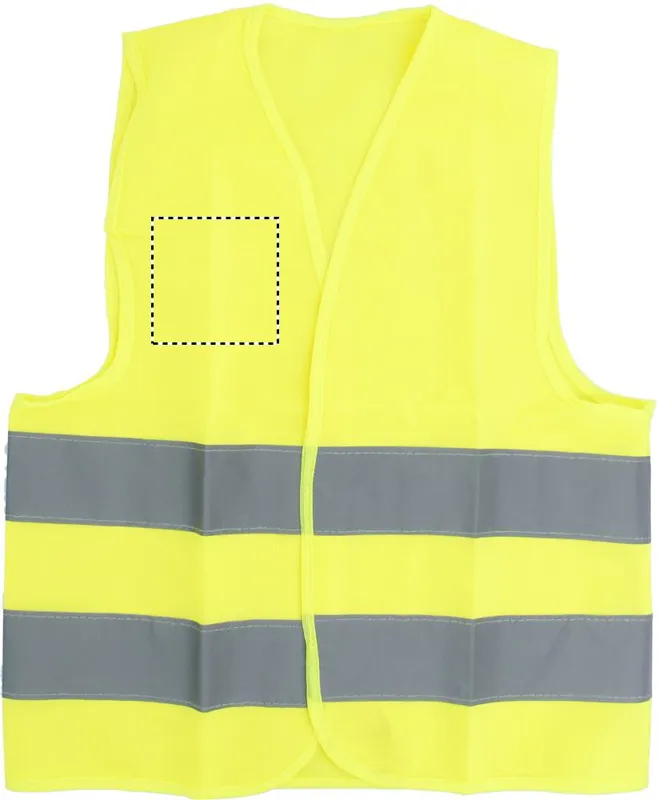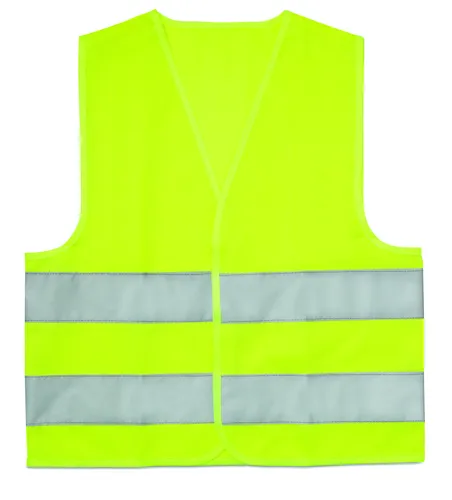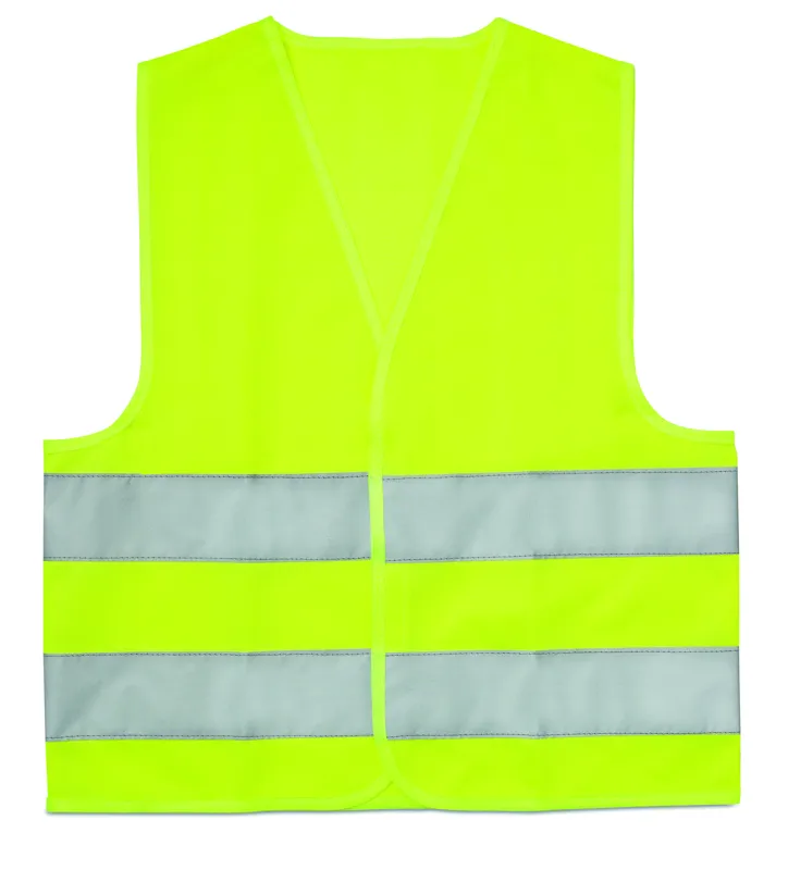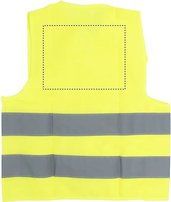 Láthatósági mellény gyerekeknek. Két fényvisszaverő csíkkal. Anyaga: 100% poliészter. EN17353.