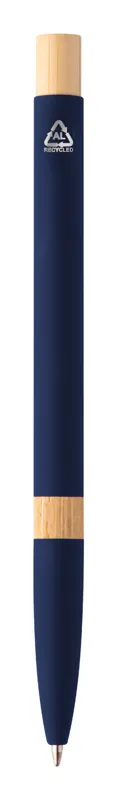 Újrahasznosított alumínium golyóstoll bambusz részekkel, gumírozott felülettel és króm klipsszel. Speciális bevonattal rendelkezik, amely különlegesen fényessé teszi a gravírozott emblémát. Kék tollbetéttel.