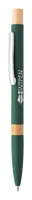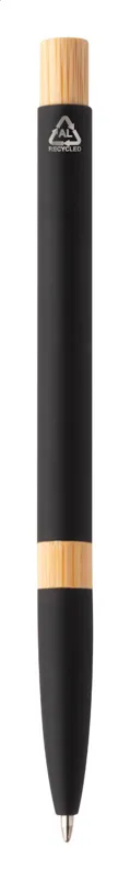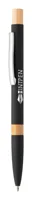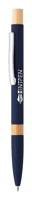 Újrahasznosított alumínium golyóstoll bambusz részekkel, gumírozott felülettel és króm klipsszel. Speciális bevonattal rendelkezik, amely különlegesen fényessé teszi a gravírozott emblémát. Kék tollbetéttel.