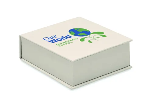 Újrahasznosított tejesdobozból készült jegyzettömb 200 lappal (70 %-ban újrahasznosított tejesdoboz és 30 %-ban újrahasznosított papír).