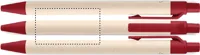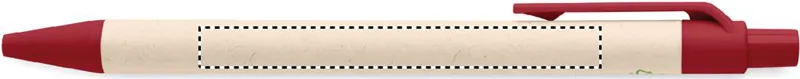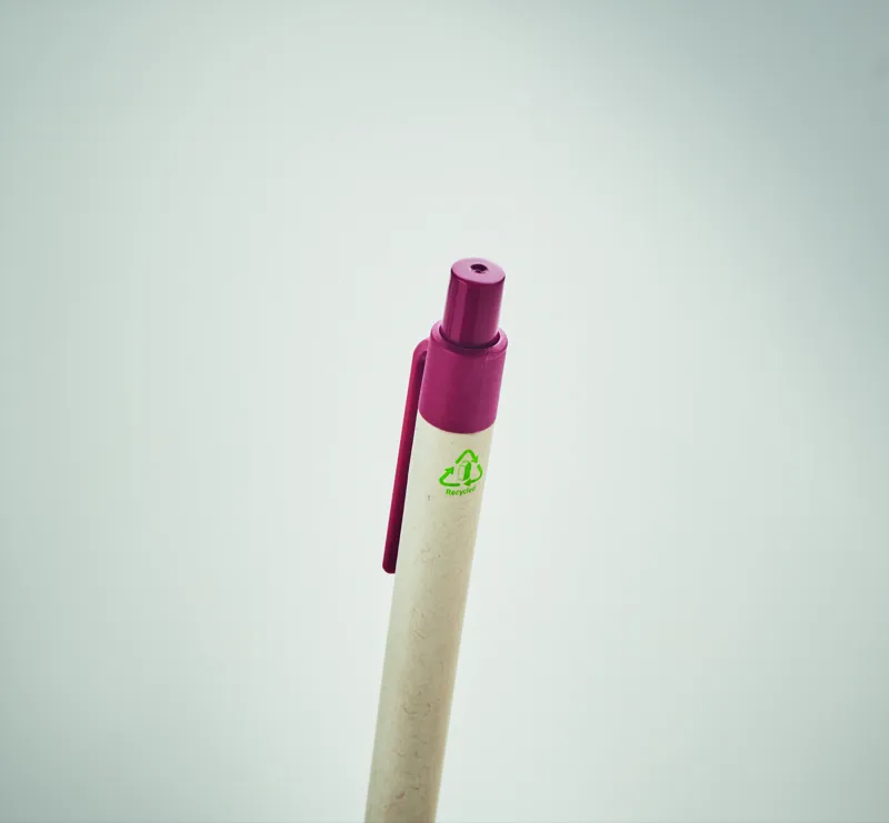 Nyomógombos golyóstoll újrahasznosított tejesdobozból készült tolltesttel (70 %-ban újrahasznosított tejesdoboz és 30 %-ban újrahasznosított papír) és PLA szerelvényekkel (100%-ban biológiailag lebomló kukoricából). Kéken író betéttel.