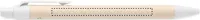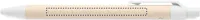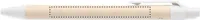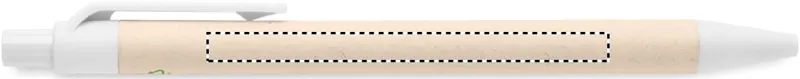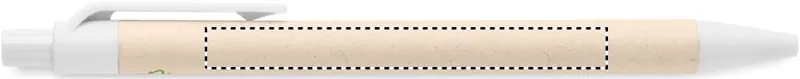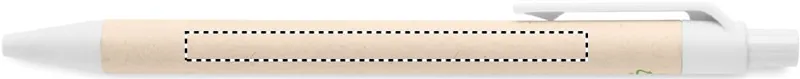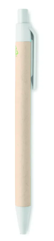 Nyomógombos golyóstoll újrahasznosított tejesdobozból készült tolltesttel (70 %-ban újrahasznosított tejesdoboz és 30 %-ban újrahasznosított papír) és PLA szerelvényekkel (100%-ban biológiailag lebomló kukoricából). Kéken író betéttel.