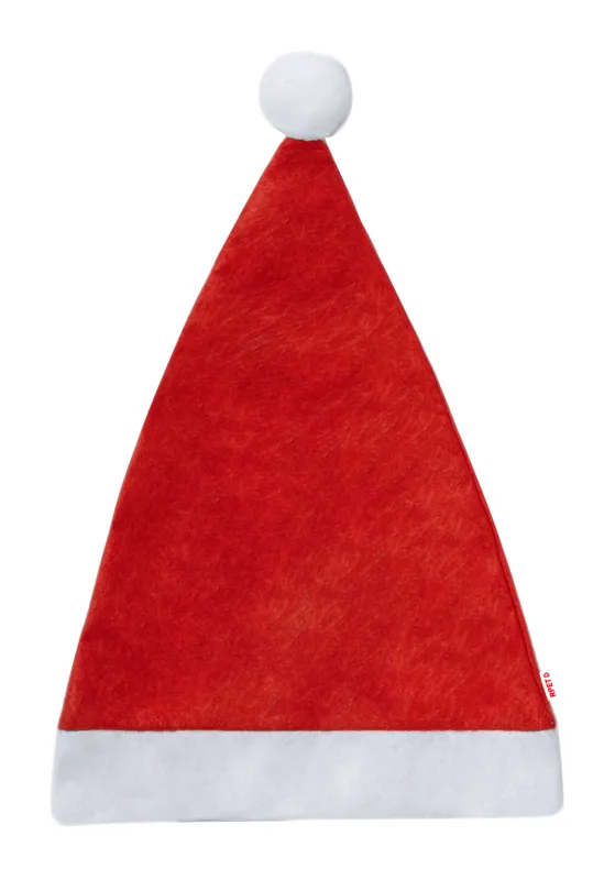 Klasszikus mikulás sapka RPET poliészterből, fehér pomponnal. Megkülönböztető RPET címkével.