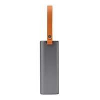 MOBILEWORK Powerbank: laptopokhoz, táblagépekhez, okostelefonokhoz és USB-n keresztül csatlakoztatható eszközökhöz alkalmas, beépített, kihúzható töltőkábellel és USB Type-C csatlakozóval (hossz: kb. 67 cm), nagyméretű kijelzővel (százalékban mutatja az akkumulátor töltöttségi szintjét, a kimeneti teljesítményt és a becsült töltési időt), be-/kikapcsoló gomb, bemenet: 65 W, kimenet: 65 W (max.) beépített kábellel, akár 100 W USB Type-C porton keresztül (kompatibilis töltőkábel szükséges, nem tartozék), kapacitás: 20 000 mAh, nagy teljesítményű lítium akkumulátor, LED zseblámpa 2 üzemmóddal (villogó és folyamatos fény), hordozófül, ajándékdobozban